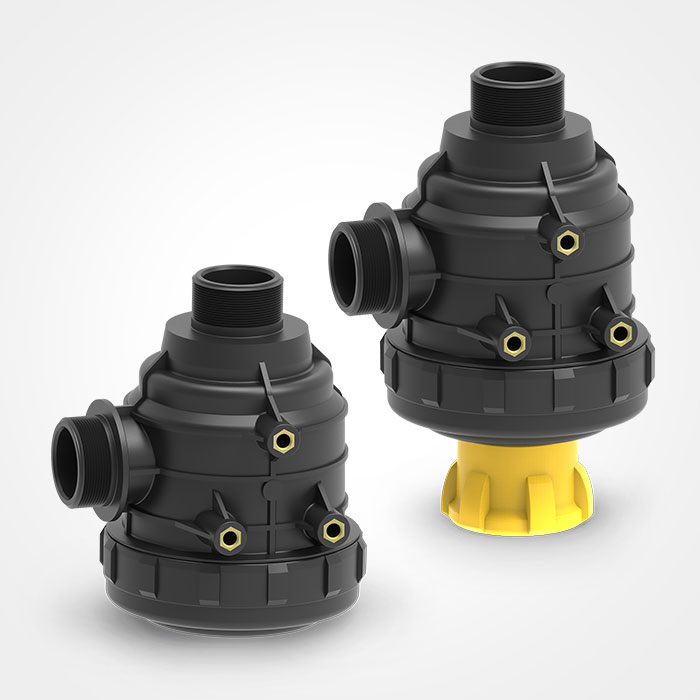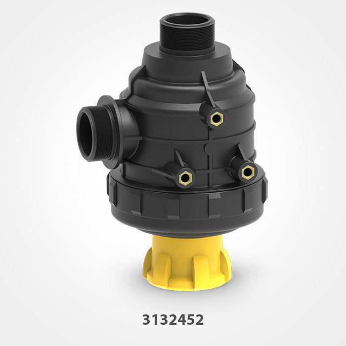 - Modell mit Ventil: Autom. Schließventil zur Reinigung, Zusätzliche Saugbohrung zum Befüllen, Ventilbetätigungsknopf