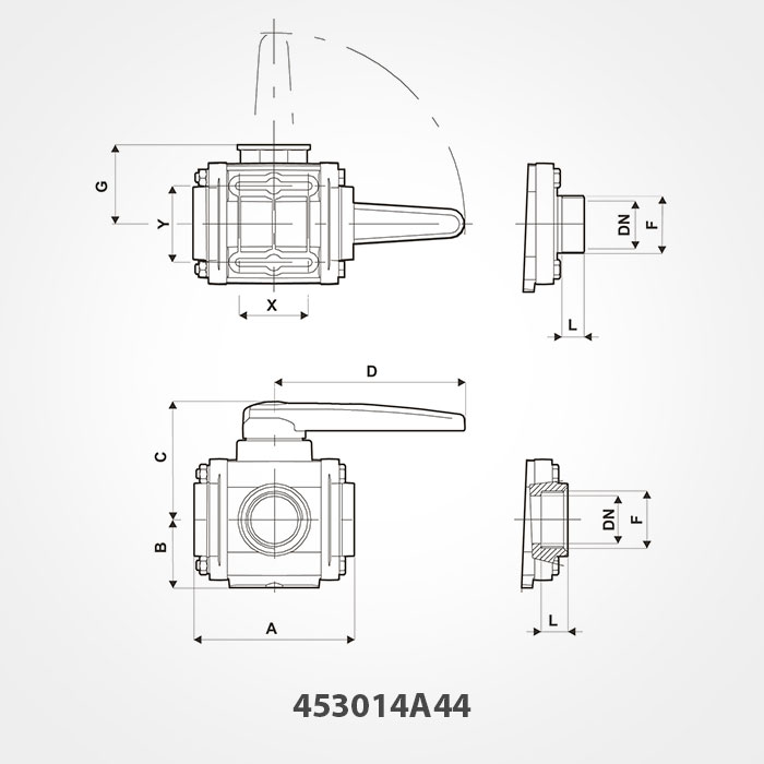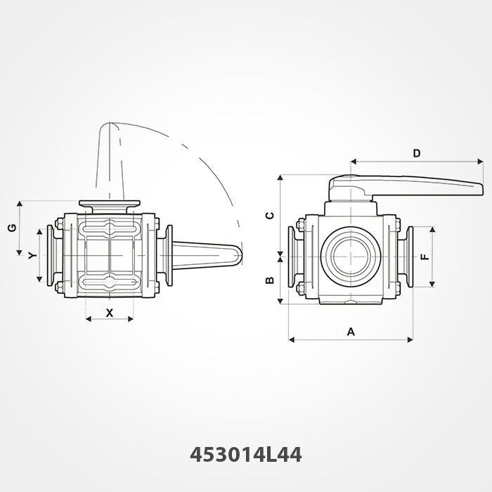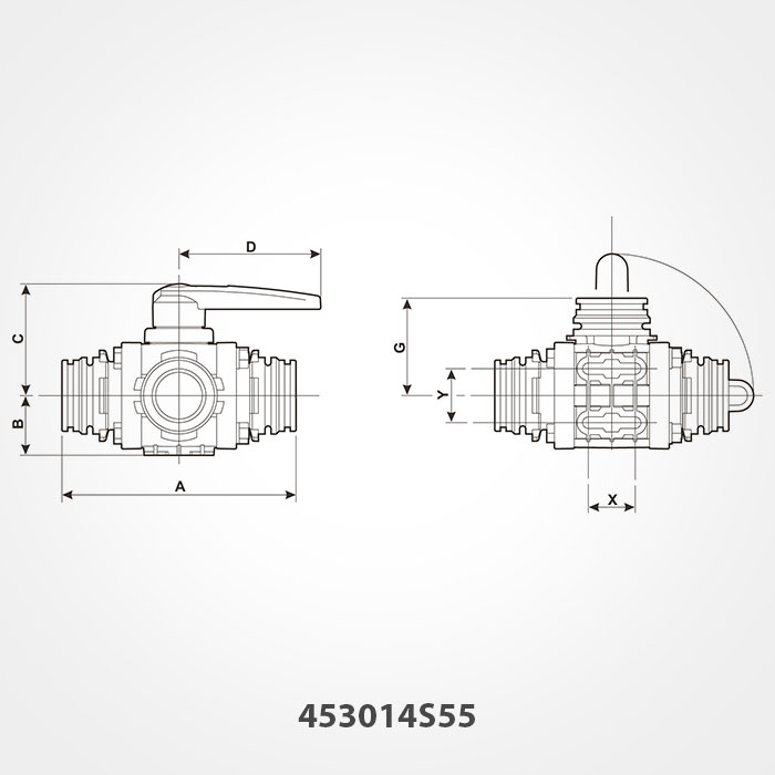 Manuelle Kugelventile, 3 Wege, seitlicher Anschluss