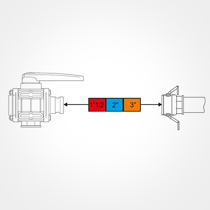 - Oder mit seitlichem Adapter-Anschluss: 1 1/2 Zoll bis 3 Zoll F, 1 1/2 Zoll bis 3 Zoll M