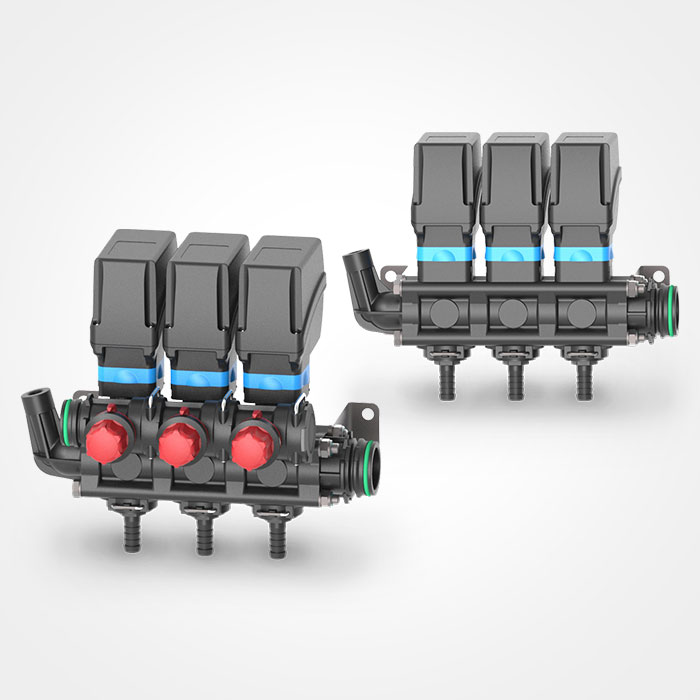 - Einheit Elektroventile mit kalibrierten Rückläufen